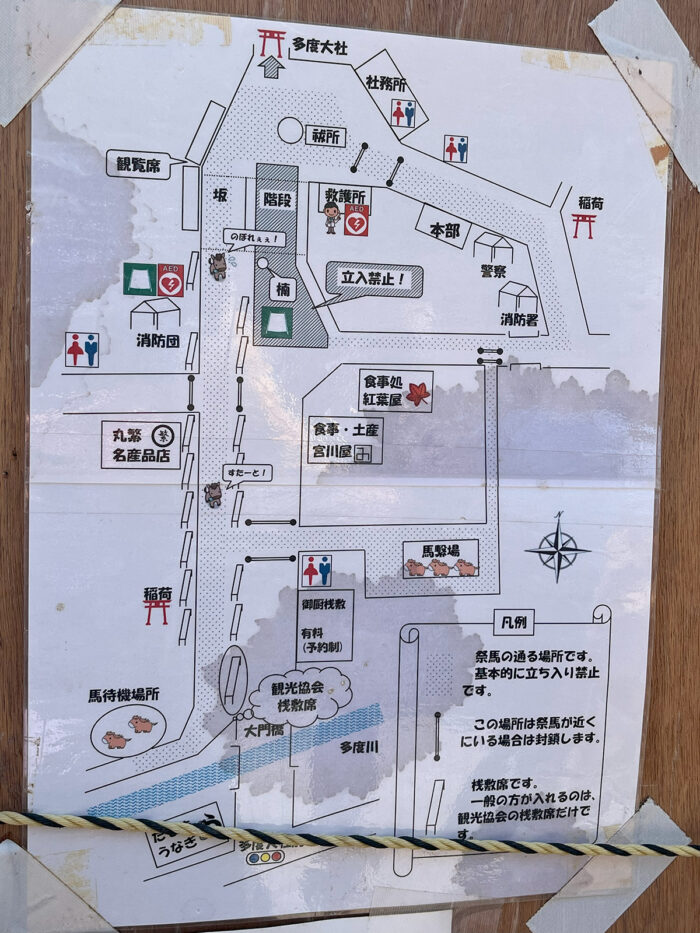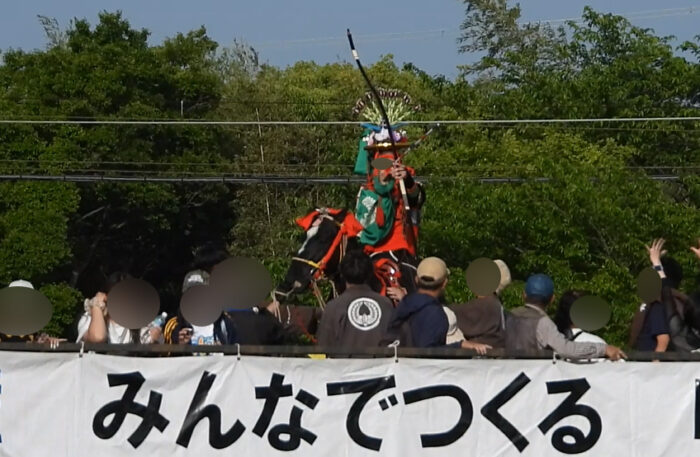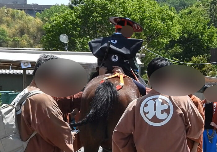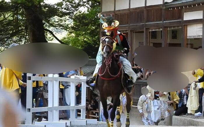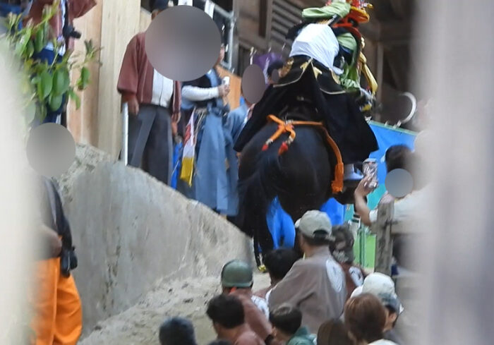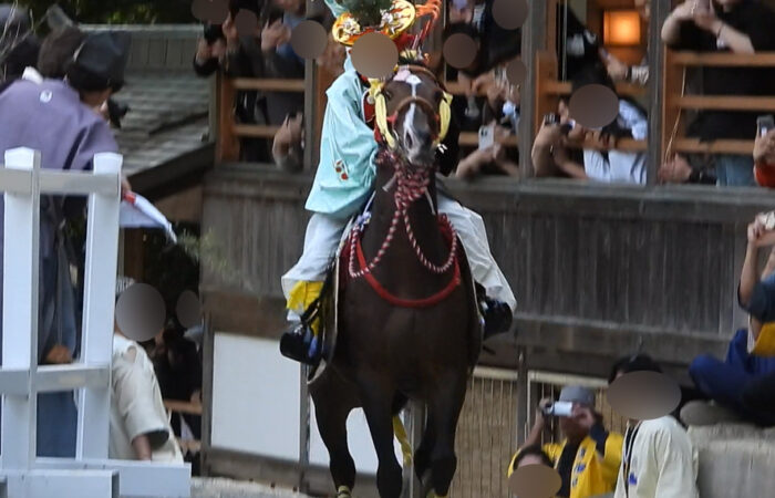 ・桟敷席があるため基本的に見えない。背の高い人や騎手の頭だけ見える。お金払った人しか観られない祭り。