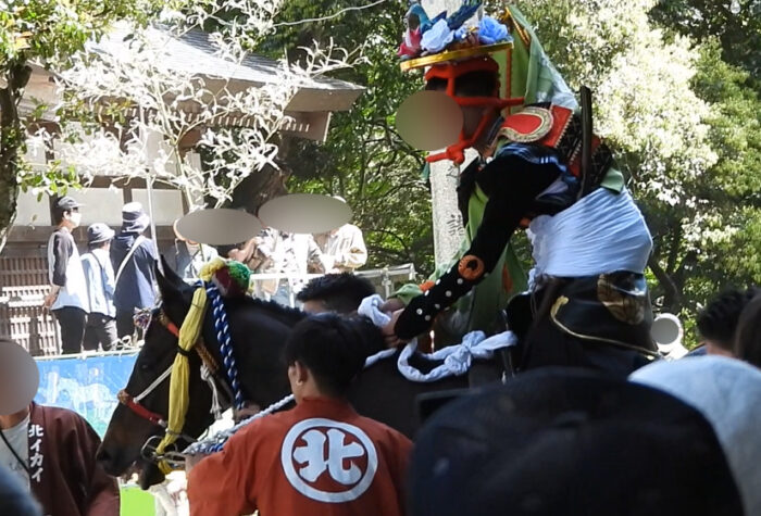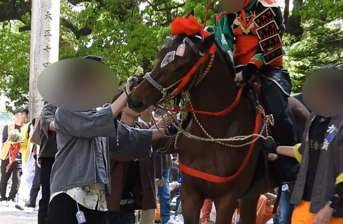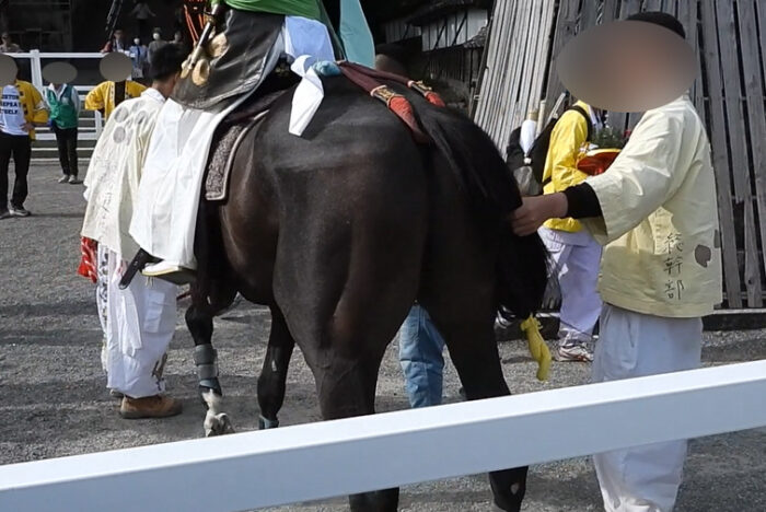 ・楠廻りの行事で「馬を叩く行為は法律で禁止されています」とのアナウンスあり。