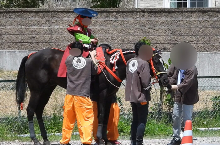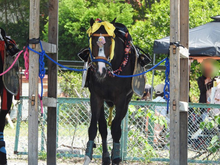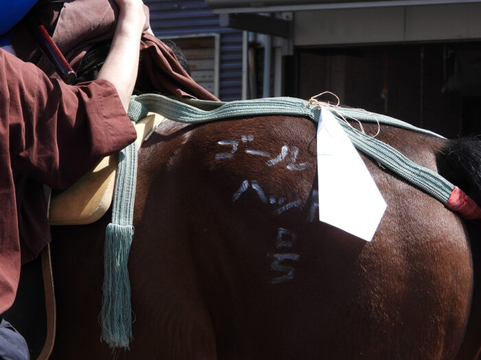 ・馬の体に馬の名前がペイントされている。その馬のことを知らない(見てわからない)人たちが当日馬を扱うのだろうか。馬の周りにいる人たちは普段馬の世話をしている人たちのように見えなかった。馬の管理の責任者は誰なのだろうと思った。