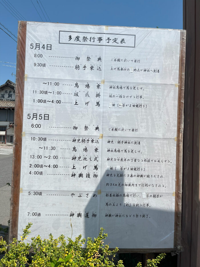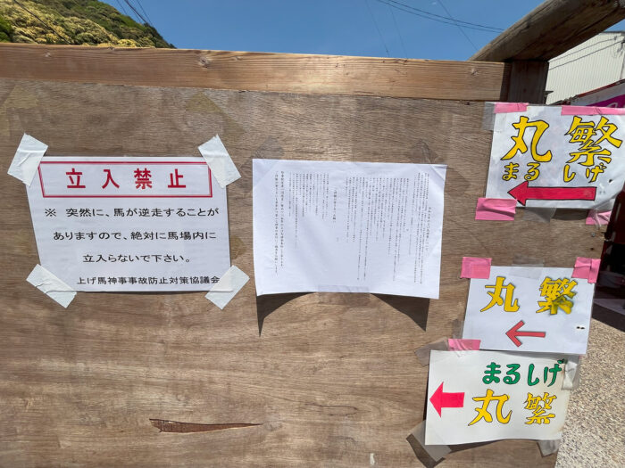 多度祭 上げ馬 神事の2日目である2025年5月5日(月)、PEACEのスタッフも現地訪問しました。メルズーガが殺処分になった2023年や、壁が撤去された2024年に現地訪問した方々とは別です。多度祭を初めて見る目で報告してもらいました。