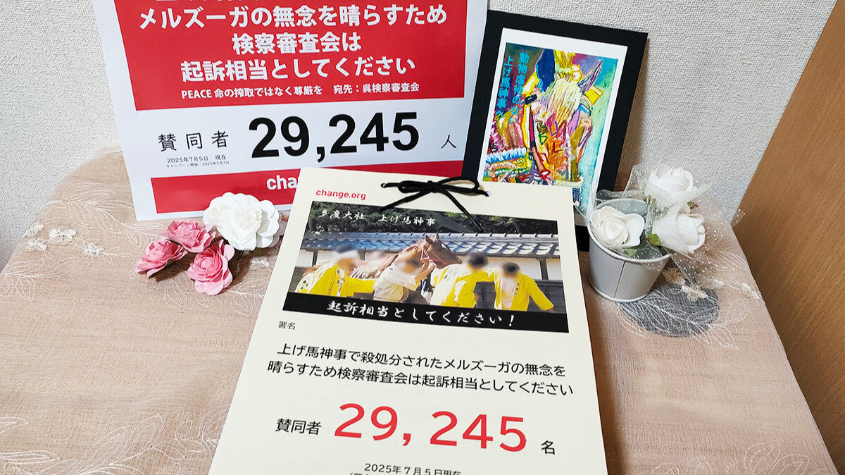 上げ馬神事について検察審査会の議決のご報告をChange.orgに投稿しました。「不起訴相当」という残念な結果となってしまいましたが、動物虐待の疑いが完全に否定されたわけではなく、疑いは残るとのコメントがありました。署名は閉じる予定です。