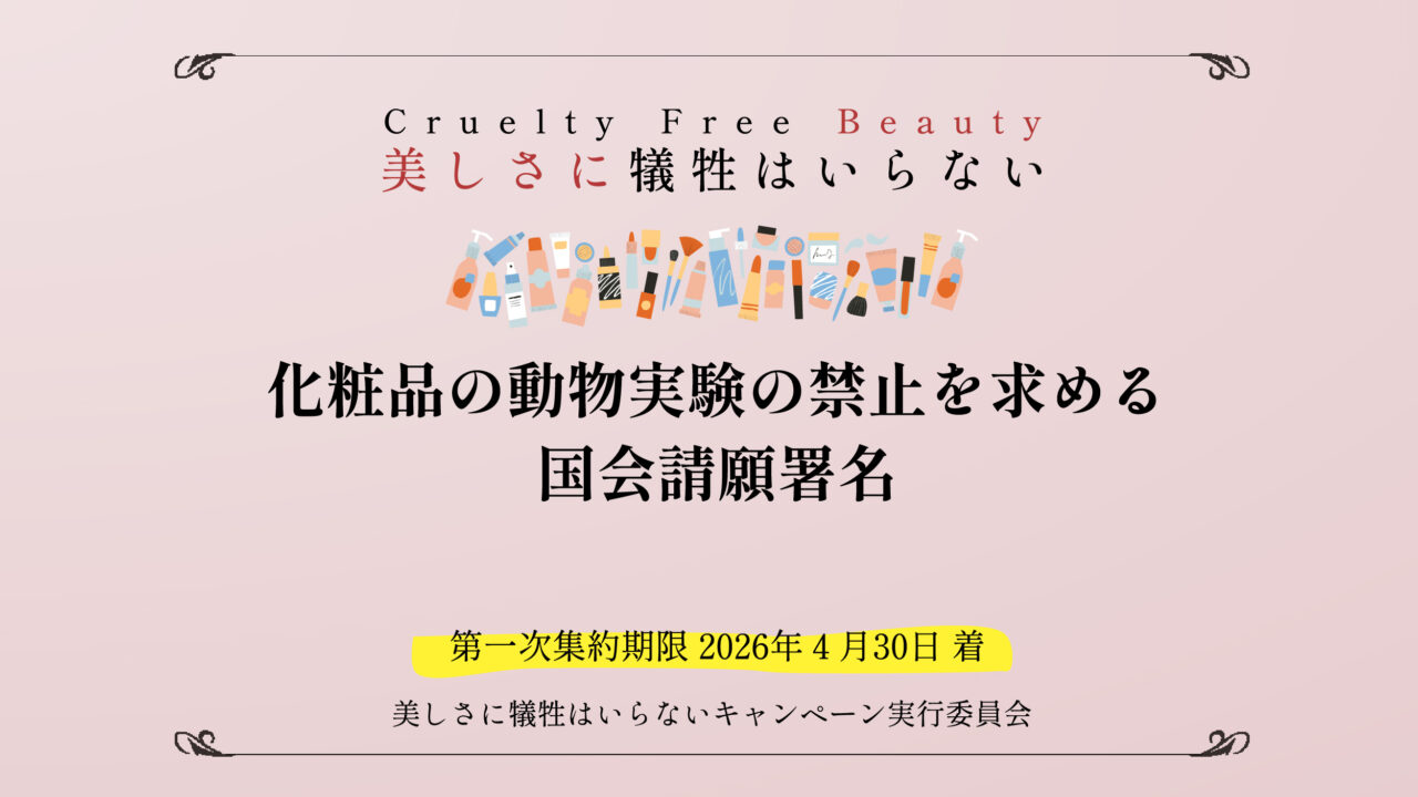 署名にご協力ください![sitecard subtitle=国会請願署名 url=https://animals-peace.net/experiments/cruelty-free-cosmetics-petition.html ta[…]